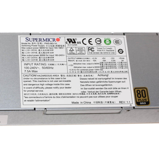 Supermicro PWS-563-1H 560W/600W 1U ATX12V & EPS12V Multi-Output 80+ Power Supply